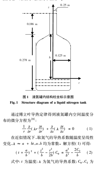 正確性,選擇常用的 10 L 的液氮罐( 內(nèi)徑 0. 115 m) ,往罐內(nèi)注入約 4—5 L 液氮,靜態(tài)放置 2 天,待液氮罐系統(tǒng)徹底穩(wěn)定后,實測液氮罐內(nèi)上部空間( 約 0. 12 m