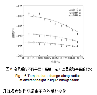 時,可保證罐內(nèi)空間溫度在 - 130 ℃ ** - 190 ℃ 之間,低于 - 130 ℃ 的時間持續(xù)近 25 天。通過控制距離液氮面的高度,合理選擇保存樣品的溫度范圍,樣品的升降溫速度、保溫時間等因素,為各種實際應(yīng)用提供便利條件。建立的罐內(nèi)空間溫度模型給出了與實際測量吻合較好的罐內(nèi)溫度分布,確定方程參數(shù)后,可便捷地分析罐內(nèi)溫度的分布,證實這模型的合理性和