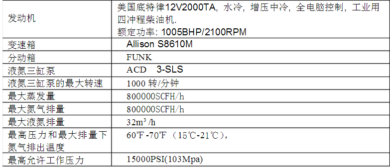 ? 該液氮泵車采用直燃式蒸發系統,將高壓液氮氣化為高壓氮氣注入油、氣井內或其他裝置,達到施工目的。